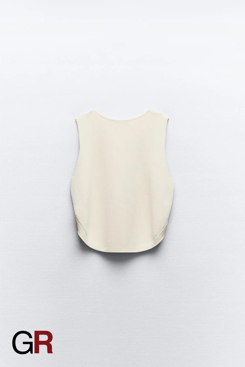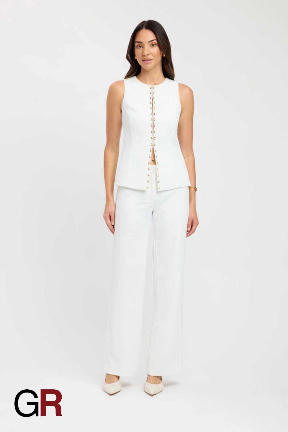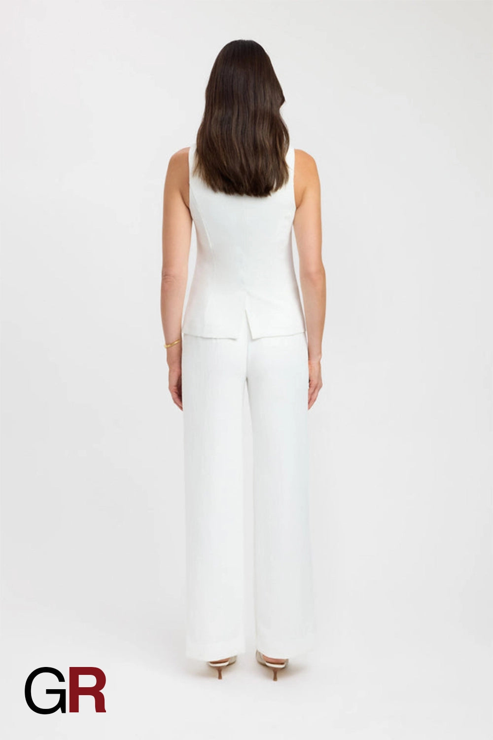 Einreihige weiße Weste mit Rundhalsausschnitt und ärmellos -