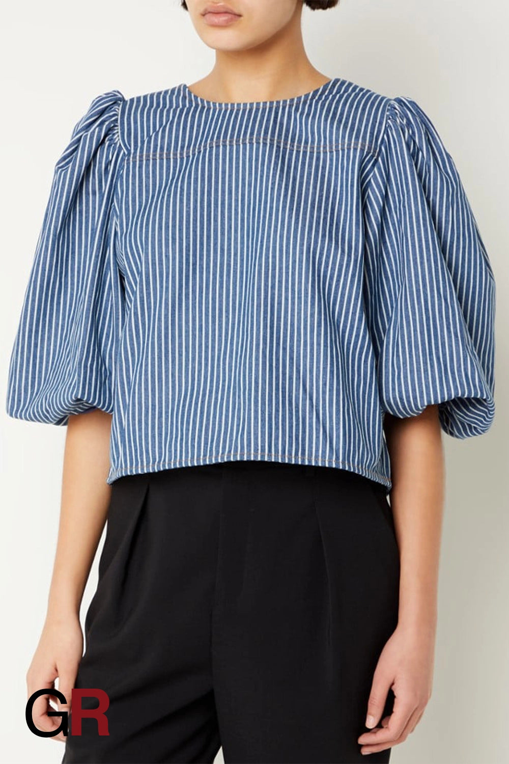 Glockentop mit Puffärmeln und königlichem Kragen -