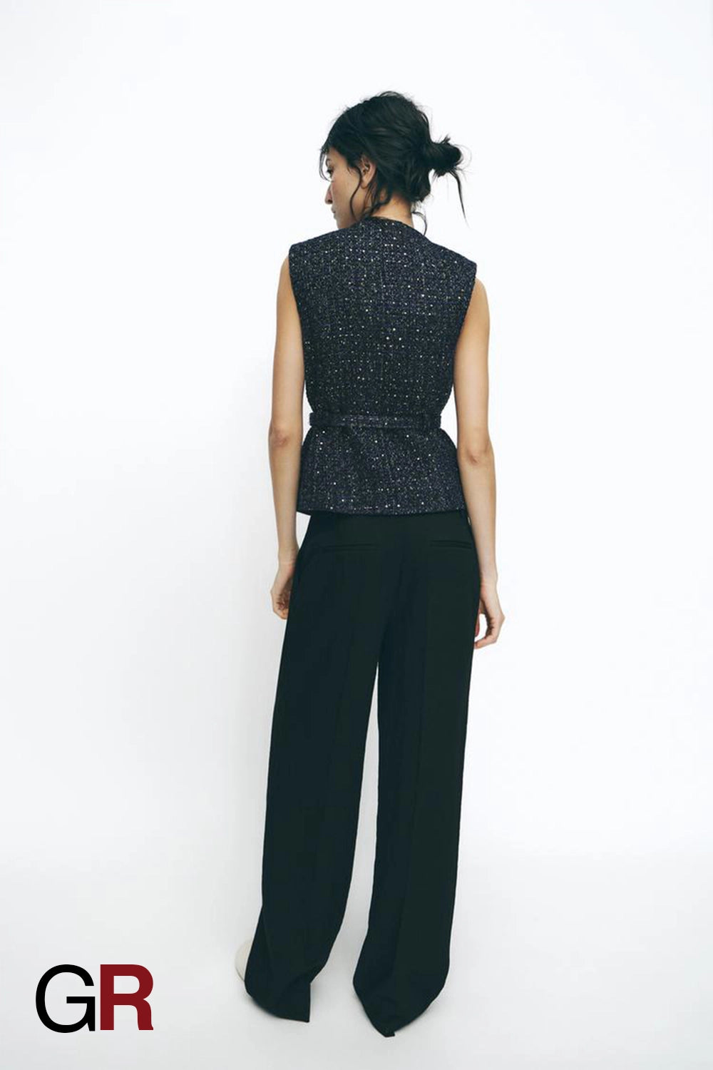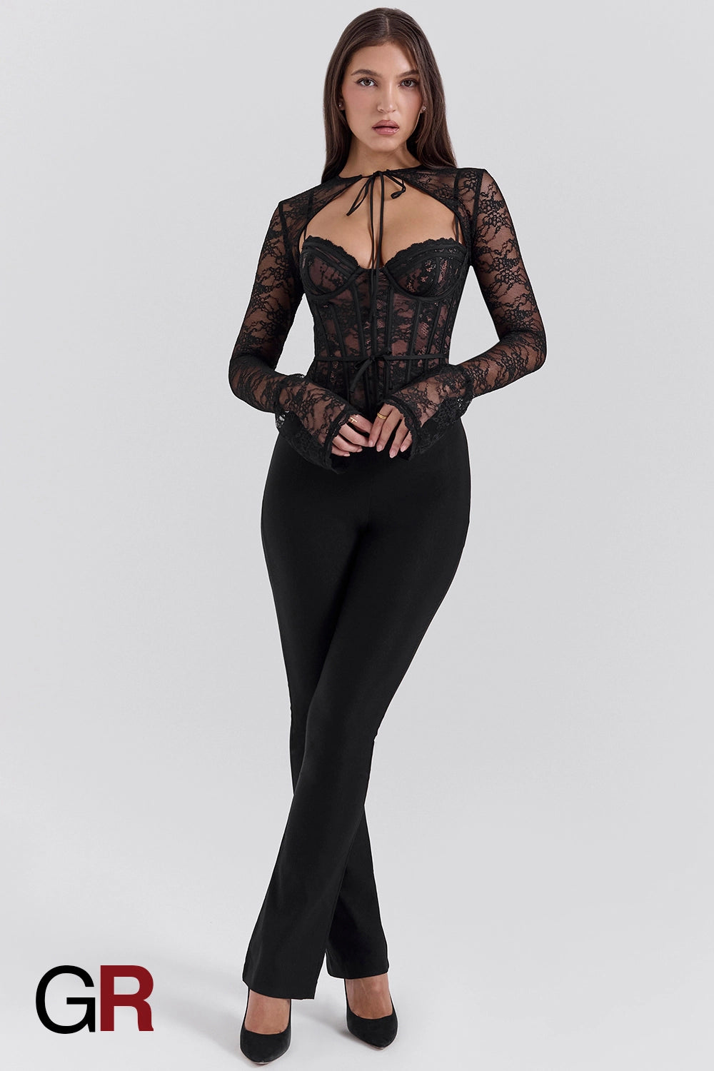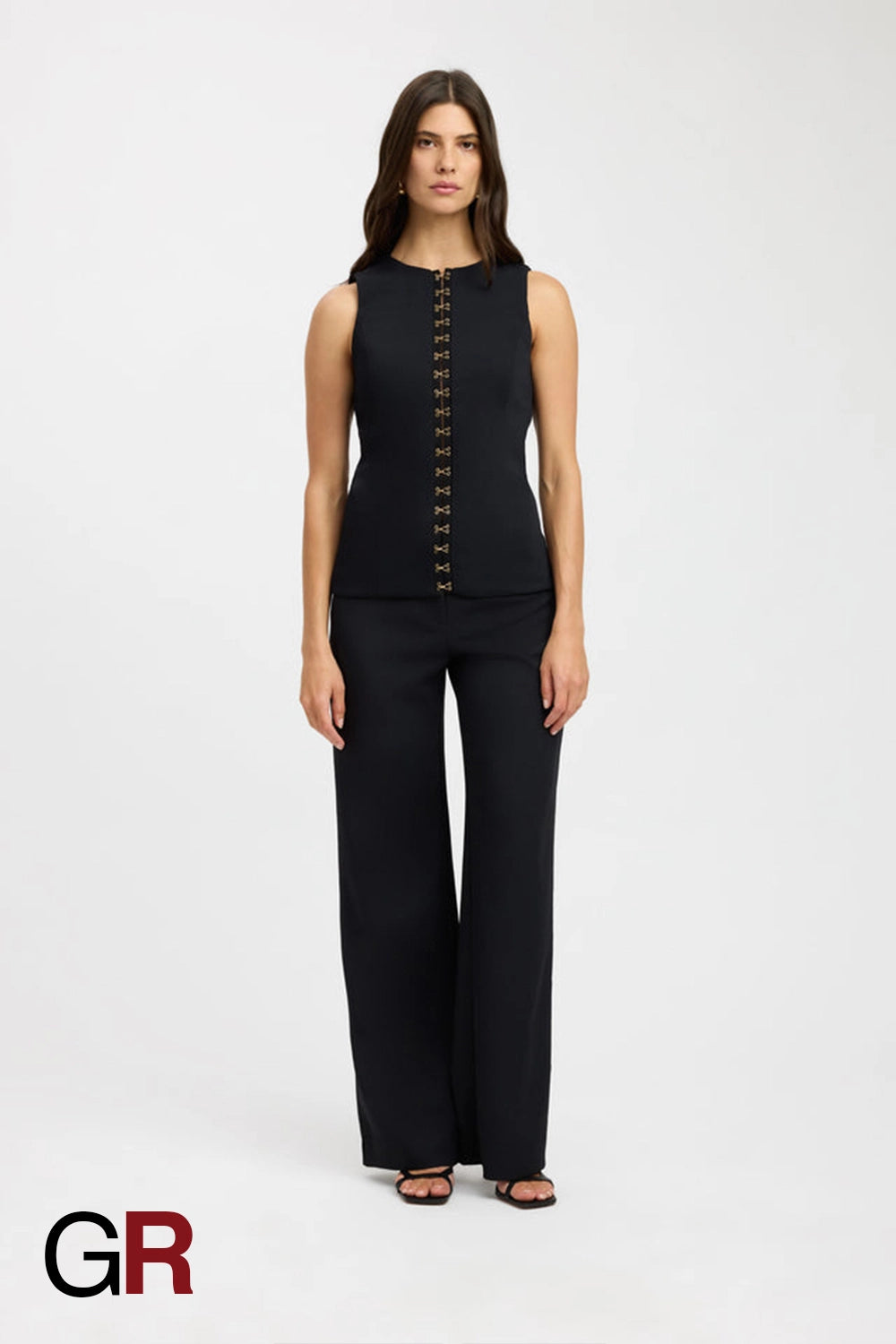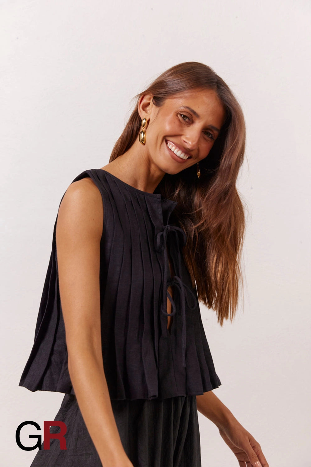 Schwarzes Top „Sculpted Elegance“ mit Schnürung in der Taille -