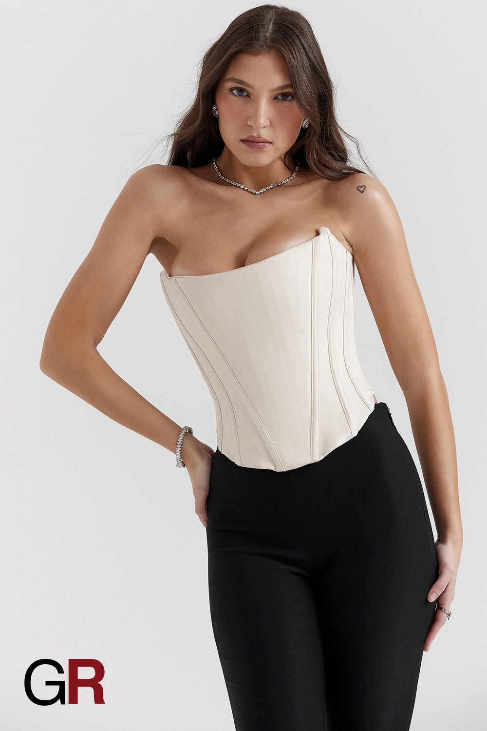 Geformtes weißes Tube-Top-Korsett mit Fischgräten-Detail -